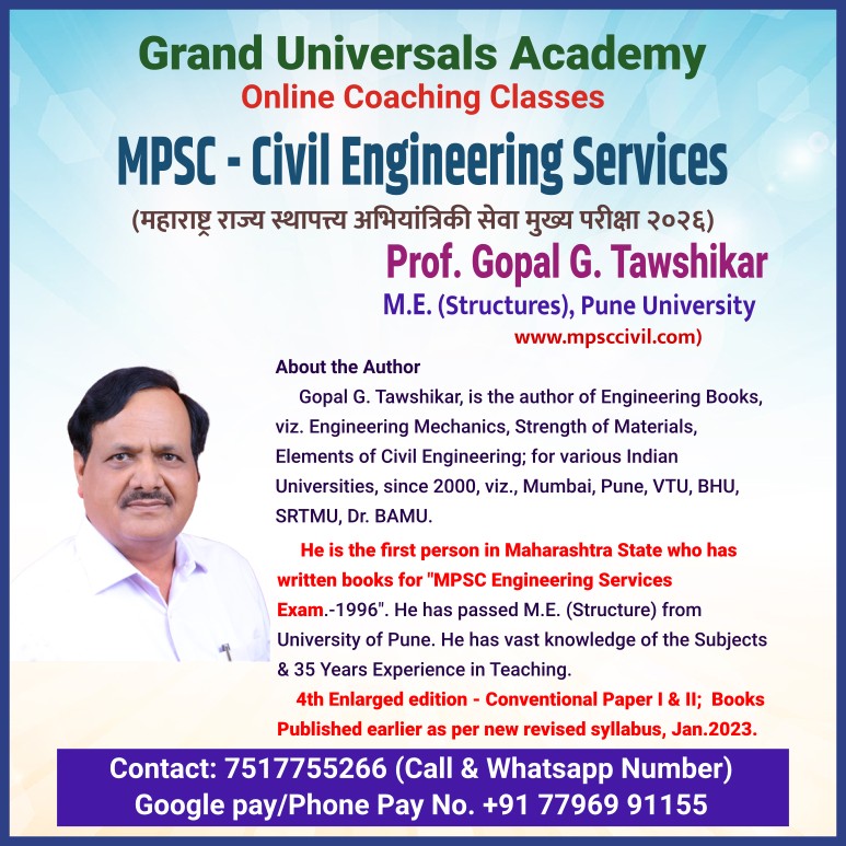 He is the first person in Maharashtra State who has written books for “MPSC Engineering Services Exam.-1996”. He has passed M.E. (Structure) from University of Pune. He has vast knowledge of the Subiects & 33 Years Experience in Teaching and Structural Designing of Buildings.